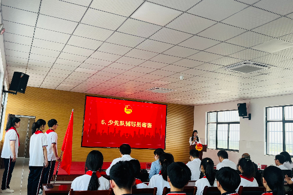 在庄严的国歌声中,入团仪式正式开始!“在今天这个特殊的日子里,同学们光荣地加入共青团,踏上人生新征程!”主持人宣读新团员名单,希望团员们担当作为,不负青春。党员代表为新团员代表佩戴团徽,颁发团员证,希望他们带着希望,充满活力,迈好青春第一步!在校团委书记的带领下,新团员们面向团旗进行庄严宣誓,“我志愿加入中国共产主义青年团......”,字字铿锵有力、句句振奋人心。新团员代表和优秀团员代表分别发言,表达了对共青团的无限热爱和为团组织增光添彩的豪迈激情。校党支部书记、校长吴传东向新团员提出希望和要求,希望同学们坚定信念,树立远大理想,锤炼良好品德,勇攀知识高峰,努力成为德才兼备的拔尖人才,不负青春,不负韶华。