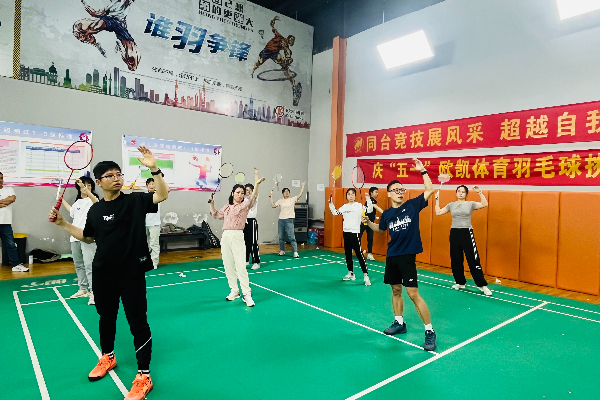 在经过简单的培训后,学员们自由组合进行了羽毛球趣味活动,伴随着一记记精彩的扣杀、劈杀,或是巧妙的高远球、吊球,大家尽情地在球场上挥洒汗水,以球会友,现场气氛热烈。