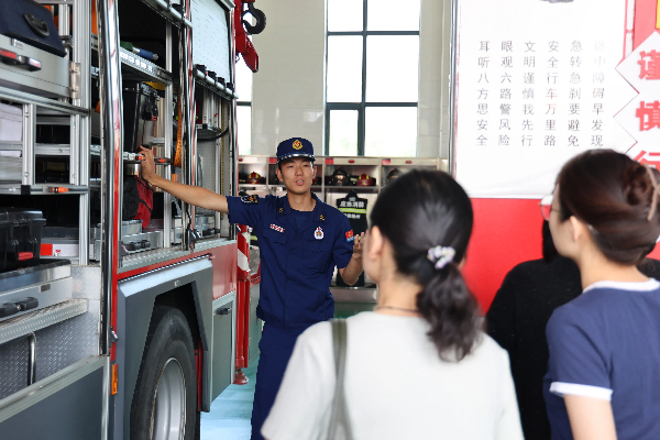 活动现场,消防宣传员带大家参观了消防车,详细介绍了消防车辆、装备器材的性能、功能及用途,同时就如何预防火灾、如何安全逃离火场等消防安全知识进行了讲解。随后,消防宣传员重点为大家讲解了灭火器的使用以及消火栓的使用方法,提醒大家要居安思危,时刻绷紧安全弦。通过“零距离”参观学习,大家对消防器材的正确使用、逃生时的注意事项等方面有了更深的了解和认识,这也让在场的团员青年们更加深刻感受到了消防员们的职业精神和专业素养。