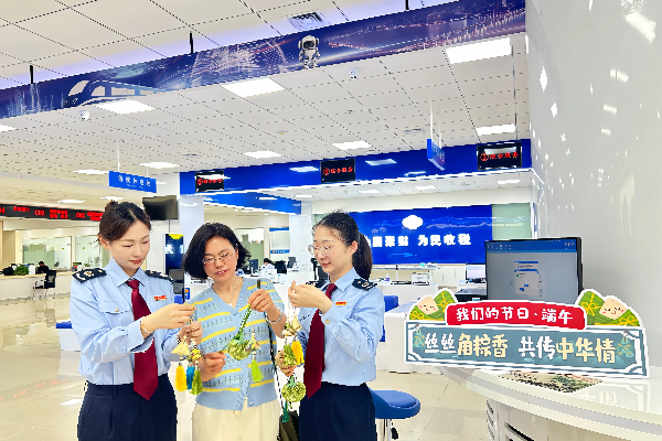 在端午佳节前夕,税务青年将亲手制作的艾草香囊,送给前来办税的纳税人缴费人,为他们送去最真挚的节日祝福。同时为他们详细讲解税收优惠政策、普及传统节日习俗,问需求、送政策、解难题,使纳税人感受到浓郁的“艾意”。(记者:梅雅丽;编辑:宋星辰)