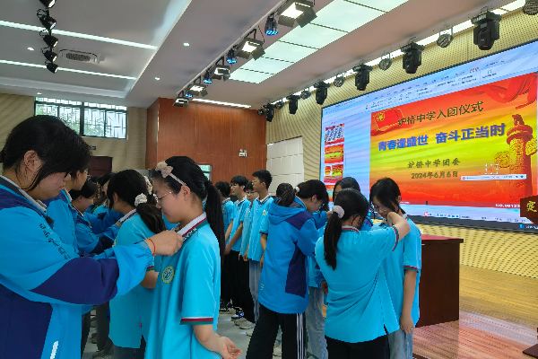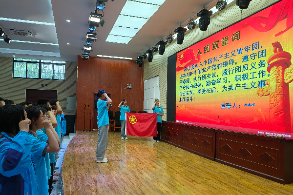 全体团员齐唱《光荣啊,中国共青团》团歌,由老团员为新团员佩戴团徽,并一起面向鲜艳的团旗进行了庄严宣誓,铮铮誓言,振奋人心。新团员代表唐雨岑在发言中表示,要把誓言化作学习的毅力和恒心,树立崇高信念,奋发进取。