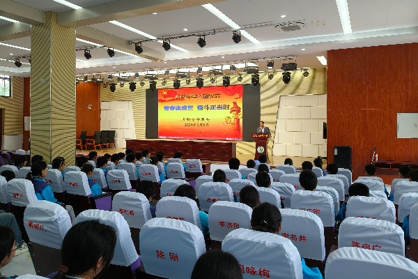 活动中,校团委委员刘传桂发表致辞,向新团员表示祝贺,殷切希望团员青年要心怀报国之志,锐意进取,以身作则,发挥团员青年先锋模范作用。校团委书记向团员青年介绍了团徽的组成及象征意义,强调每一位团员从佩戴上团徽的一刻起,就要认清自己肩负的责任与使命,以实际行动表明自己无愧于共青团员的光荣称号。