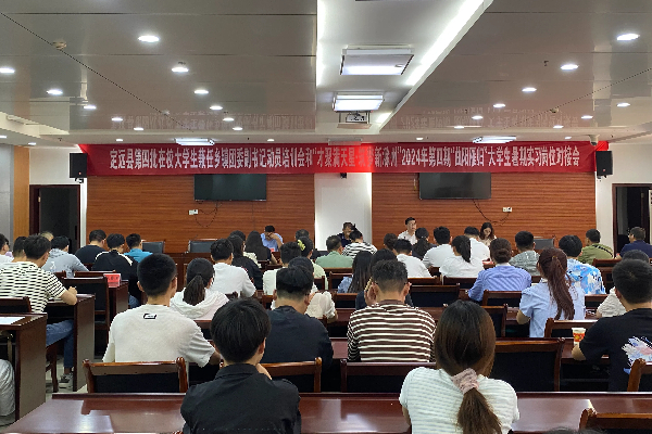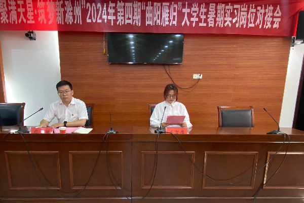为深入贯彻党的二十大精神,全面落实习近平总书记关于做好新时代人才工作的重要思想,促使大学生在基层实践中增长才干、健康成长,推动大学生返乡就业创业。7月5日上午,定远县召开第四批在校大学生兼任乡镇团委副书记动员培训会和“才聚满天星·筑梦新滁州”2024年第四期“曲阳雁归”大学生暑期实习岗位对接会。县委组织部、县人社局、团县委相关负责同志,提供岗位的有关单位负责人,以及大学生乡镇兼职团委副书记和暑期实习实践大学生参会。
