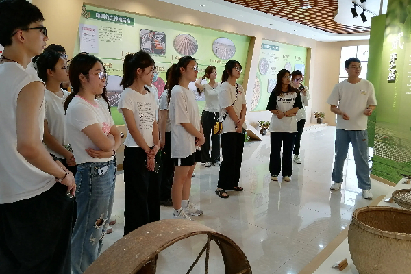 随后,青年学子们前往藕塘镇花生文化馆,在讲解员的引导下,大家分别参观了门厅和展示厅两部分,门厅以“藕塘印象”展示系统为核心,主要介绍了藕塘的基本概况和五大振兴;展示厅以“一路生花”为主题,以花生的生长历程为序,分别从“根之始”、“芽之盛”、“花之艳”、“果之丰”四个角度,全面展示了花生的历史、文化内涵、藕塘花生产业的全链条发展等,学子们深切感受到定远乡村文化的繁荣发展,真实感受乡村振兴战略在定远的深入推进。