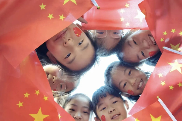少先队员们齐聚在鲜红的五星红旗前与国旗合影,向国庆献礼、向祖国致敬,表达最诚挚、最热烈的祝福。一张张幸福的合影,表达了少先队员对祖国的热爱,每个人的脸上都洋溢着迎接国庆的喜悦。