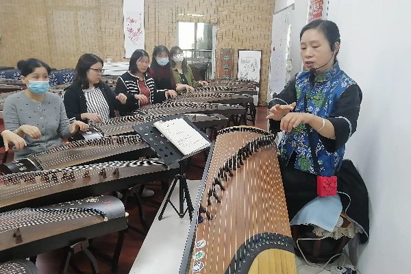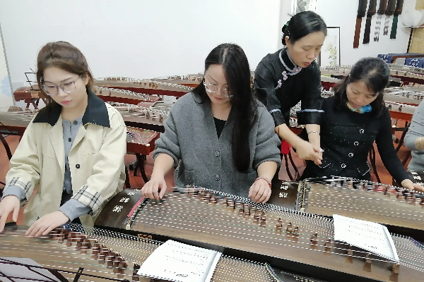 实操弹奏环节,老师带领学员们动手弹奏古筝,并在一旁给予耐心指导,纠正学员们的错误动作,帮助她们掌握正确的演奏技巧。