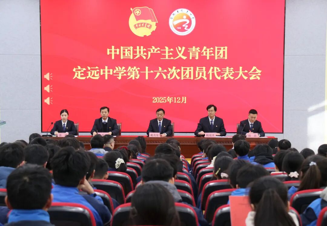 青春逢盛世,奋斗正当时。2025年12月14日,共青团定远中学第十六次团员代表大会在学校科创楼一楼报告厅隆重召开。定远县教育体育局副局长、定远中学校党委书记戴茂俊,校长鲍观泽,纪委书记单顺忠出席会议,校团委及156名团员代表参加大会。本次大会凝聚青春力量,共绘发展蓝图,全体团员代表肩负使命、齐聚一堂,共同见证学校共青团事业发展的重要时刻。大会由副校长颜浩同志主持。
