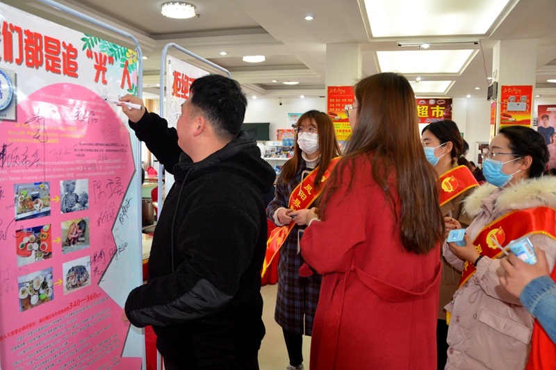 此次活动的口号是“我们都是追‘光’人、拒绝舌尖上的浪费——从我做起”。当日中午,志愿者们来到机关食堂餐厅,向就餐人员倡议“光盘行动”,号召大家按需点菜,拒绝剩饭剩菜;尽量堂食,减少外带;少点外卖,简易包装,自备勺筷。在餐盘回收处,志愿者们为“光盘”人员点赞,并送上1盒酸奶表示奖励。广大就餐人员积极响应此次活动,纷纷在“我们都是追‘光’人”宣传牌上签名,并真正做到不剩饭、不剩菜,以实际行动守护“舌尖上的文明”。