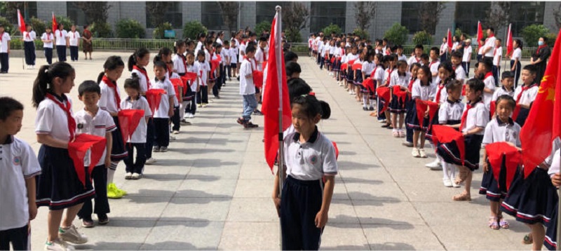 队旗飘飘,星星火炬闪耀。值此建党百年之际,又恰逢六一儿童节,凤阳县前门小学少先队举行了一年级新队员入队仪式。