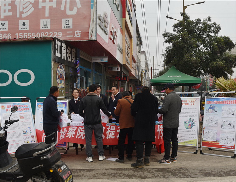 开展街道普法。组织青年干警前往楼东网格责任区,走街串巷,向群众发放宣传单和手册,宣传“双提升”工作,以及防范电信网络诈骗相关知识,引导群众下载、使用国家反诈中心APP,提高群众识骗、防骗能力,筑牢防范电信网络诈骗的“防火墙”。
