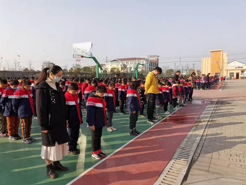 凤阳县大溪河镇中心小学开展第八个南京大屠杀死难者国家公祭日“升国旗、降半旗”仪式