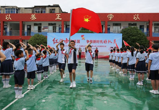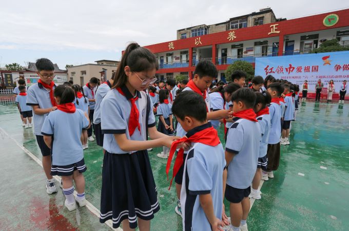 为学习贯彻习近平总书记五四青年节对全国广大青年寄语精神,贯彻落实《中共中央关于全面加强新时代少先队工作的意见》精神,引领广大少先队员牢记习近平总书记的教导,不断增强少先队员的光荣感和组织归属感。近日,“红领巾爱祖国 争做新时代好队员”——凤阳县“六一”主题队日活动暨分批入队示范观摩活动在凤阳县府城小学举行。