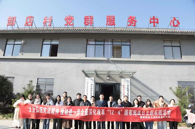为全面贯彻落实党的二十届三中全会精神,深入学习领会习近平法治思想,大力加强宪法宣传教育,推动宪法意识、税收法治精神入脑入心,在第11个国家宪法日来临之际,凤阳县税务局组织开展“大力弘扬宪法精神 推动进一步全面深化改革”“12·4”国家宪法日主题实践活动,县局青年干部及凤阳县殷涧镇卸店村部分人员参加活动。