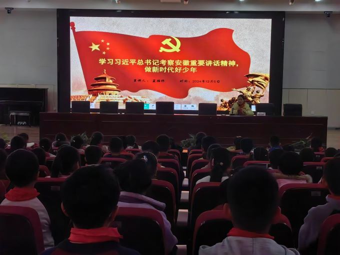 11月中旬以来,凤阳县红领巾巡讲团将习近平总书记考察安徽重要讲话精神作为思想火炬高擎于顶,以点带面全面引燃全县少先队员及少先队辅导员群体的思想星火,掀起了一阵坚定信心共同谱写中国式现代化安徽篇章的思想热潮。截至目前,面向不同地域、不同学校的少先队员及少先队辅导员分别开展了专题宣讲12场,获益人数2000余人。