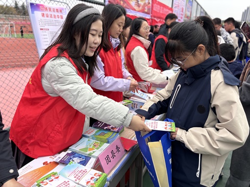 活动现场,团县委工作人员联合县青志协的青年志愿者们,通过发放宪法宣传手册等方式,向青少年们生动讲解了宪法的基本内容和重要意义,帮助学生们理解宪法是如何在日常生活中发挥作用的。同时,活动还特别向学生普及《未成年人保护法》《预防未成年人犯罪法》等相关法律法规,提升了青少年对宪法的认知,激发孩子们对法治精神的尊重与认同。