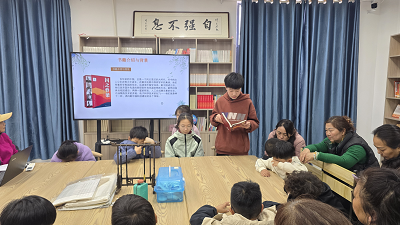 阅读分享环节将活动推向高潮。青少年们踊跃发言,分享自己的阅读感悟。由傅世钰、詹斯唯两位同学为大家分享了茅以升和郭永怀两位院士的感人事迹。家长和孩子们沉浸在院士们的传奇人生中,激动地表示:“读了这本书,我被院士们胸怀祖国、服务人民的爱国精神深深打动。他们放弃国外的优渥条件,毅然回国,为国家的繁荣奉献一切。我要以他们为榜样,努力学习,将来报效祖国。”另一位同学则提到:“院士们勇攀高峰、敢为人先的创新精神激励着我。在学习中遇到难题时,我不能轻易放弃,要敢于尝试新方法,探索新知识”。最后,农家书屋管理员引导家长和孩子们细细品读,在阅读中培养青少年的文化自信与家国情怀,引导他们树立正确的世界观、人生观和价值观。