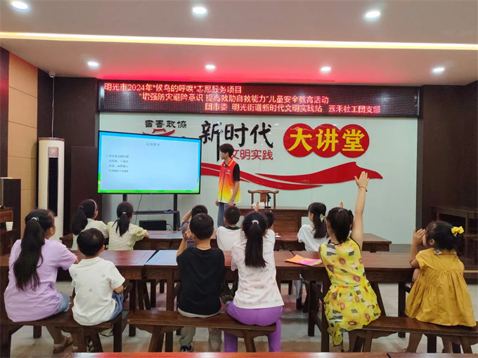 为进一步强化儿童安全防范意识,预防和减少各类安全事故的发生,近日,团明光市委携手嘉禾社工团支部在明光街道新时代文明实践站开展“增强防灾避险意识 提高救助自救能力”儿童安全教育活动。