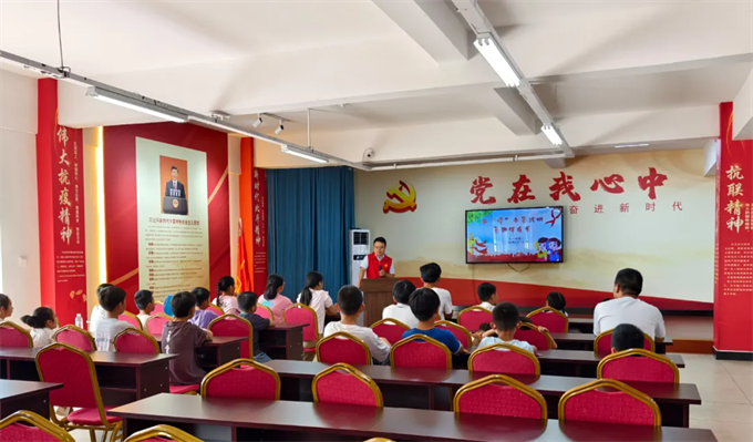 张八岭镇开展暑托班活动。近日,张八岭镇团委联合张八岭镇新时代文明实践所等部门组织开展红“岭”巾暑托班,暑期陪伴成长活动。活动开始,志愿者通过播放防溺水安全教育警示片和防溺水知识问答等方式,增强青少年儿童防溺水安全意识,帮助了解掌握防溺水的重要性和“六不准”、“四不要”等内容,进一步加强孩子们安全防范意识,杜绝溺水事故发生。随后,志愿者带领孩子们参观了景泰阳爱国主义教育馆,大家认真观摩,详细了解中国发展历程,生动的讲解,让孩子们深入学习了党的历史,感受到优秀的中华文化,激发了孩子们的爱国热情。最后,孩子们前往国学馆,穿上汉服,体验古人的礼仪传统,跟着国学老师学习汉服文化知识和尊师重道礼仪,让孩子们在轻松愉悦的氛围中体验传统文化的底蕴,更好地传承了中华民族优秀传统文化。