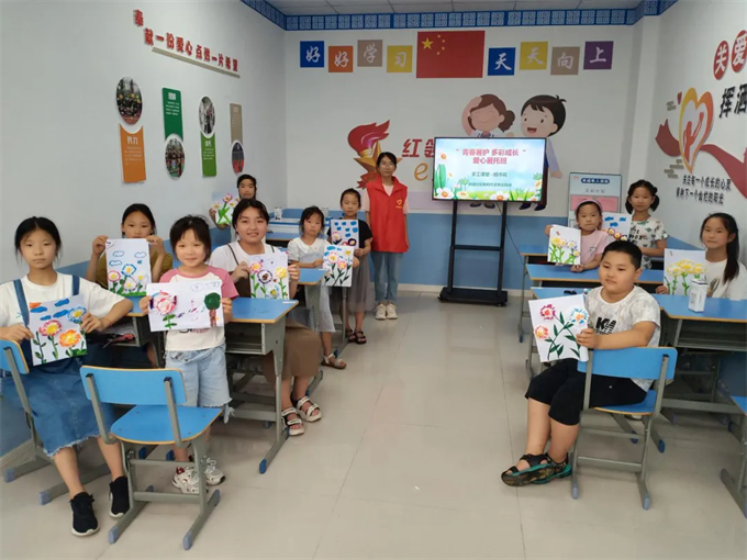 在开班前,依托村级团组织充分了解家长和孩子需求,在作业辅导之外邀请乡村文化带头人、非遗传承人等参与暑期托管班,设计创新多元化课堂、打造兴趣班,开设趣味剪纸、多彩绘画、诗词鉴赏、“漆”彩扇面等课程,同时结合暑期防溺水工作,对学生进行宣传教育,既丰富了暑期生活,又提升了安全意识。暑假期间共组织各类活动216场次。