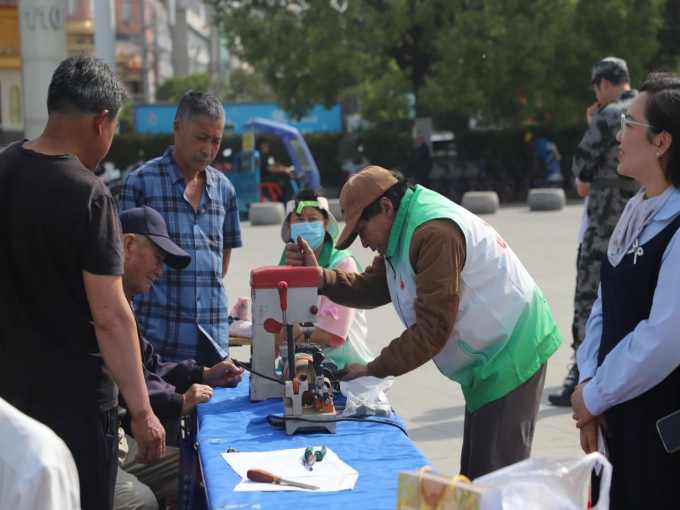 在志愿活动环节,团市委组织志愿者们为广大市民朋友开展“义诊、义修、义理、义卖”等志愿服务活动。医务志愿者专业细心地为过往群众提供听诊、血压测量等服务,并就“如何保持身体健康”这一问题给出饮食等方面的专业建议;同时,明光市工人子弟学校少先队员开展义卖活动,市青年商业协会及市青年联合会成员积极参加义卖活动,并将义卖活动所有收入均捐献给慈善机构,共同建设“爱心城市”。社会服务组织的青年志愿者为市民提供免费修家电服务与免费理发服务,把“便民”与“环保”兼顾起来,与市民共同打造“温暖、绿色”的宜居之城。