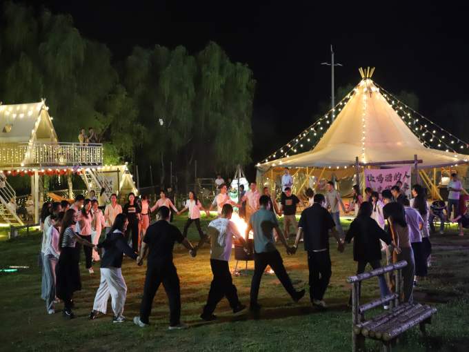 夜幕降临,烧烤音乐会派对正式开场。滋滋作响、香气四溢的烧烤美食,搭配精彩纷呈的音乐演出,瞬间点燃现场热情。乐队以经典情歌热力开唱,绚丽灯光与动人旋律交相辉映,将现场化作一片欢乐的海洋,青年们纷纷沉浸其中,尽情享受音乐与美食带来的愉悦。熊熊篝火燃起,将氛围推向高潮。青年朋友们手拉手,围绕篝火载歌载舞,在欢快的节奏中忘却生活烦恼,共享美好时光。随着篝火渐熄,本次活动也圆满落下帷幕。