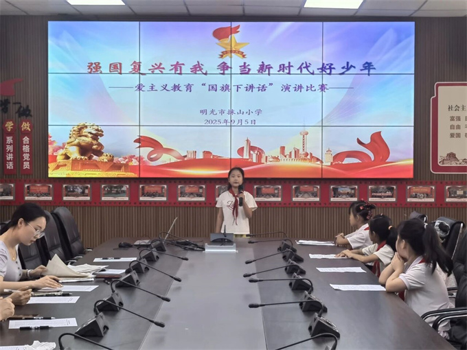为深入学习贯彻爱国主义精神,激励广大少年儿童立志为强国建设、民族复兴而读书,争当新时代好少年,2025年9月5日上午,明光市抹山小学隆重举行了“强国复兴有我 争当新时代好少年”爱国主义教育“国旗下讲话”主题演讲比赛。