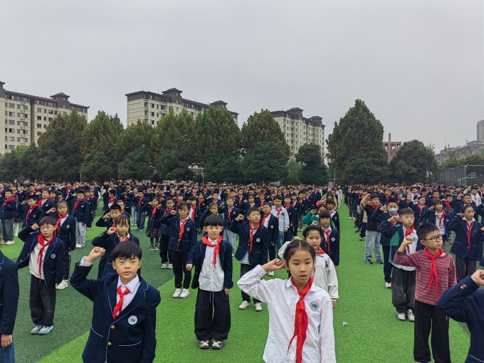 清晨,仪式在雄壮的国歌声中正式开始。五星红旗冉冉升起,全体少先队员行队礼,目光专注,神情庄严。大队辅导员在国旗下讲话中,带领师生回顾少先队七十余年的光荣历程,强调红领巾所承载的革命精神与时代使命,鼓励队员们传承红色基因,担当民族复兴大任。