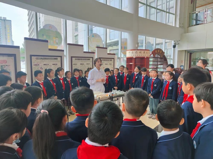 在医务人员带领下,学生们有序参观中医药文化长廊、名医堂等区域,通过实物展陈和专业讲解,了解中医"望闻问切"诊断方法和"未病先防"养生理念,学习"悬壶济世"等传统医德典故。在中药房和实践区域,学生们辨认常见中药材,观察药用植物特性,并在药师指导下学习使用中药戥秤、制作中药香囊,亲手完成药材称重、配伍等实践环节。