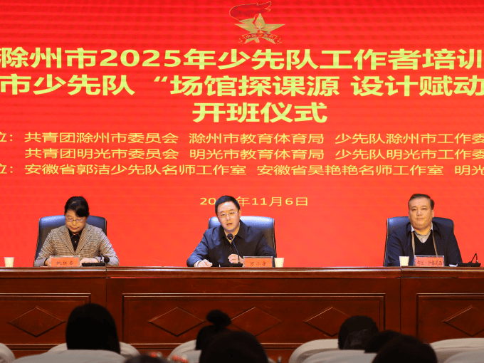 11月6日下午,开班仪式在明光市抹山小学报告厅举行。团滁州市委副书记、市少工委副主任万小宇出席并作动员讲话,滁州市教体局、明光市教体局、团明光市委相关负责同志参加。仪式上传达了党的二十届四中全会精神,重温了习近平总书记致第九次全国少代会的重要贺信和党中央致词精神,学习了省少工委七届二次全会精神。万小宇在动员讲话中强调,全体学员要珍惜学习机会,提升专业素养,共同推动滁州市少先队事业实现新发展。