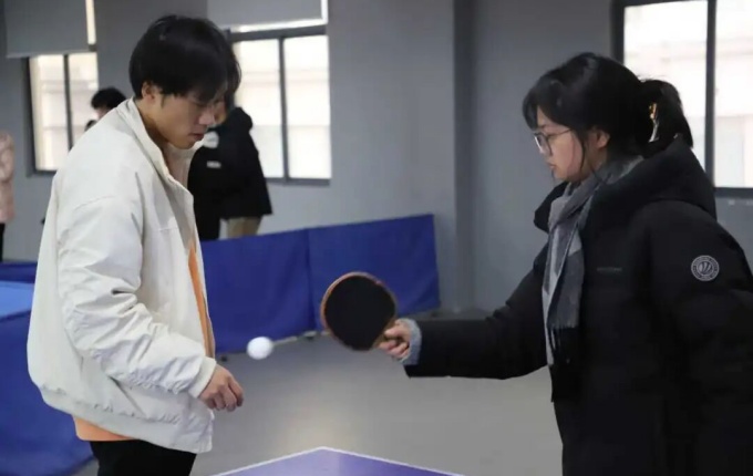 教练细致的讲解与示范,让在场的青年学子快速掌握了乒乓球的核心要领,现场击球声、欢笑声此起彼伏。