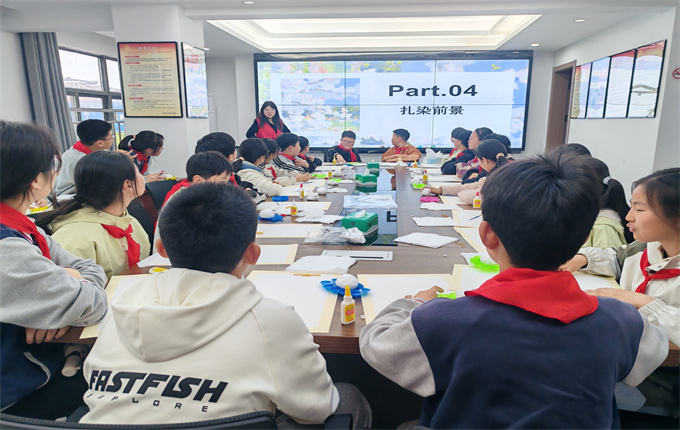 活动从一段通往“星辰大海”的旅程开始。共青团“伙伴领航”公开课以《我们的征途是星辰大海》为主题,通过视频资料回顾中国航天事业的辉煌历程,点燃孩子们探索未知、勇于创新的科学梦想。随后,一场《扎染科普》小课堂,又带领大家穿越回历史长河,系统了解这项古称“绞缬”的传统印染技艺的前世今生与工艺奥秘,在孩子们心中埋下了一颗非遗传承的种子。