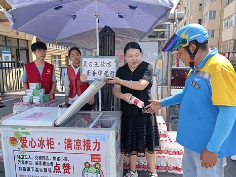 现在,越来越多的爱心人士和爱心商家加入到关爱一线户外工作者的行列中来。在了解到“爱心冰柜”活动后,银东社区“小太阳”志愿服务队的小志愿者们把他们的零花钱捐出来购买饮品;沿途商家自发设置“爱心补给站”,为户外工作者提供免费饮用水、应急药品、充电、短暂休息等爱心服务;许多市民打电话前来咨询如何捐赠……爱心接力棒传递开来,在炎炎夏日滋润了人心。