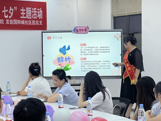 为大力弘扬中华优秀传统文化,传承优秀民俗,丰富青年业余生活,在七夕节即将到来之际,发能国际城社区团总支联合皖东检验检测院、南谯区人民法院在发能国际城社区“青年之家”共同举办“发能青年夜校”七夕特别版“青春有你 七夕拾光”主题活动。