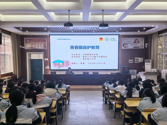 为进一步加强青少年青春期安全自护教育,提高青少年自我防范意识,12月13日下午,由共青团滁州市委主办,共青团南谯区委、滁州12355青少年服务台、滁州市第八中学承办的在滁州市第八中学开展。