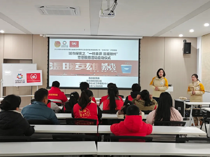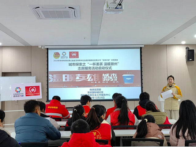 为更好地筹备元旦“一杯姜茶 温暖滁州”志愿服务活动,营造人人爱公益、人人做公益的良好社会氛围,同时增加参与志愿服务人员的体验感,扩大活动的社会影响力,2024年12月28日上午,由共青团中央发起的中央专项彩票公益金支持的2024年共青团“伙伴计划”示范项目——滁州市南谯区发能国际城社区“团团活力圈”项目中“城市探索”之“一杯姜茶 温暖滁州”志愿服务活动启动仪式在发能国际城社区二楼会议室举办,南谯区青年志愿者协会志愿者、部分儿童及家长志愿者代表共计20余人参加了本次活动。