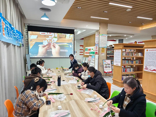 活动中,老师首先向青年朋友们介绍了扭扭棒的基本特性和制作技巧,随后引导大家动手制作桃花盆栽。在老师的巧教下,青年朋友们发挥创意,用灵巧的双手将一根根普通的扭扭棒编织成一朵朵栩栩如生的桃花,再配以精致的花盆,一盆盆充满生机与创意的手制盆栽便诞生了。