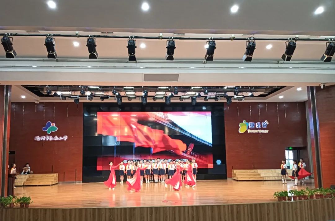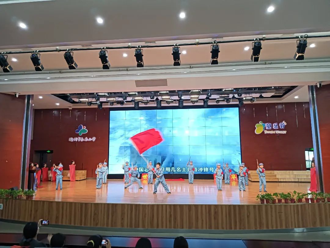 文艺演出在激昂的鼓点声中拉开帷幕。永乐小学的同学们带来的非遗表演《花鼓传承》瞬间点燃全场热情,铿锵有力的鼓点展现了新时代少年的蓬勃朝气。舞蹈《乘风少年》用矫健的舞姿演绎追梦少年的壮志豪情,课本剧《小英雄雨来》生动再现了抗战小英雄的机智勇敢,情景剧《盛世中华》通过时空对话的形式,展现百年中国的沧桑巨变。当《我爱你中国》的旋律响起,全场响起了热烈的掌声。