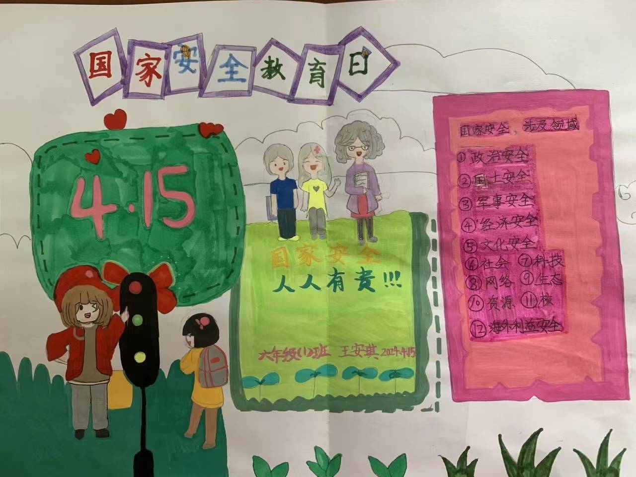 利用课后服务,学生在老师的带领下学习国家安全方面的一些知识,并通过自己的小手,画出对祖国安全的肯定和维护国家安全的决心。