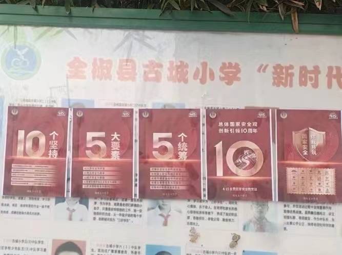 古城小学开展了一系列国家安全教育为主题的宣传教育活动。此次宣传活动与法治宣传教育有机结合,通过宣传海报、电子屏、国旗下讲话、主题班队会等活动宣传总体国家安全观,普及《宪法》、《国家安全法》、《反恐怖法》、《反法》等法律法规,营造良好的学习宣传氛围,从而切实提高全民国家安全意识,增强全民国家安全责任,形成维护国家安全的强大社会共识。