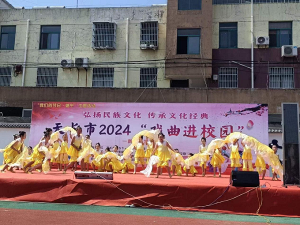 文艺志愿者们精心编排了《珊瑚颂》《鸿雁传书》等多场富有吸引力的精彩节目,涵盖了扬剧、京剧、川剧等多个剧种,现场掌声不断。演出结束后,戏曲演员向孩子们讲述戏曲的历史、剧种的区别、角色的分类。新街镇团委通过戏曲这一传统艺术形式,将端午节的文化内涵和戏曲的魅力相结合,让师生们在欣赏和体验中感受中华优秀传统文化的博大精深。