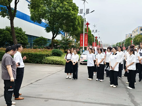 兴致勃勃地参观完科创城以后,同学们来到了安徽天康集团。在天康集团,大学生们在相关工作人员的引导介绍下,参观学习了各类设备和生产流程。一番讲解之后,在场的青年学子纷纷感叹家乡发展如火如荼的势态,对未来回到故土、建设家乡的展望又深刻了几分。