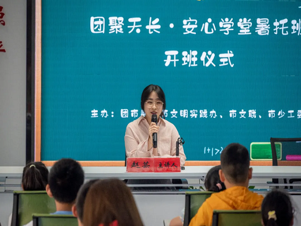 为引导和帮助城乡困境青少年、农村留守儿童、城市外来务工人员子女、新业态新就业群体子女、双职工子女度过一个安全、快乐、有意义的假期,进一步增强共青团在城市基层治理的政治功能和社会功能。7月22日,团市委、市文明实践办、市文联、市少工委联合举办“团聚天长·安心学堂”暑托班开班仪式,市委常委、宣传部部长麻丽敏出席开班仪式并讲话,暑托班的志愿者老师、青年志愿者以及报名活动的少先队员们参加了活动。