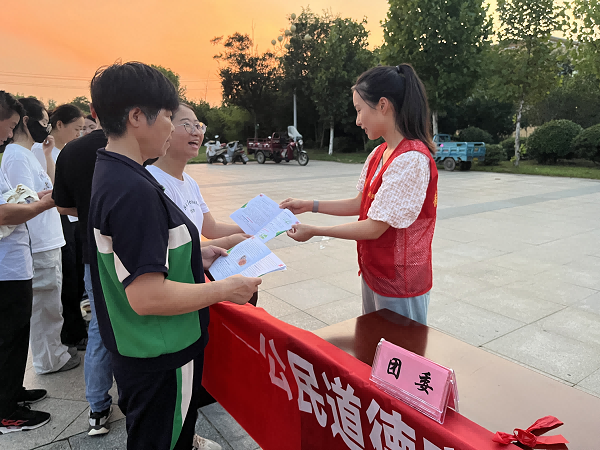 活动现场,青年志愿者向来往群众讲解“公民道德宣传日”的意义和来历,积极宣传道德规范,号召群众遵守社会公德,争做遵德守礼的引领者;恪守职业道德,争做爱岗敬业的模范者;弘扬家庭美德,争做良好家风的传承者;提升个人品德,争做文明行为的示范者;倡导移风易俗,争做文明新风的传播者;践行明礼诚信,争做诚实守信的践行者。万寿镇团委将持续厚植道德沃土,强化价值引领,推动全镇形成学习典型、争当好人的社会风尚。