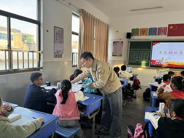 活动一开始,青年志愿者在各班开展了安全教育课并发放了宣传手册,向孩子们讲解火灾发生时该如何自救等消防安全知识。随后,青年志愿者和全体师生共同进行了消防疏散演练。急促的警报声响起,孩子们在老师的带领下,用湿毛巾捂住口鼻,弯着身体从教学楼有序撤离,快速到安全地带集合,并由老师清点报告人数,全体人员安全撤离。整个消防疏散快速、安全、有序。