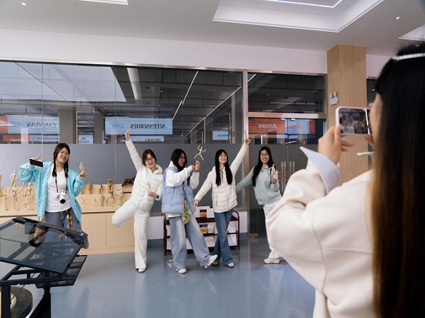 滁州学院美术与设计学院300余名师生走进天长市博物馆,在千年文物中探寻创作灵感;深入嘉美乐礼品、双丰文化、千鸿文化等本土文创企业,近距离见证美术用品从设计草图到成品落地的全流程。在嘉美乐展厅,曾亮相卡塔尔世界杯、杭州亚运会等国际顶级赛事的巨型吉祥物样品整齐陈列,企业负责人重点介绍了今年与中央广播电视总台“大春晚季”合作研发的马年系列文创吉祥物、以及美加墨世界杯吉祥物的设计历程,让师生们深切感受到本土企业的文创实力。郑集六七八乡愁记忆馆里,斑驳的老物件与生动的史料画面,成为师生们汲取乡土养分的“户外画室”。这场“行走的课堂”,让艺术创作在产业实践中生根发芽。