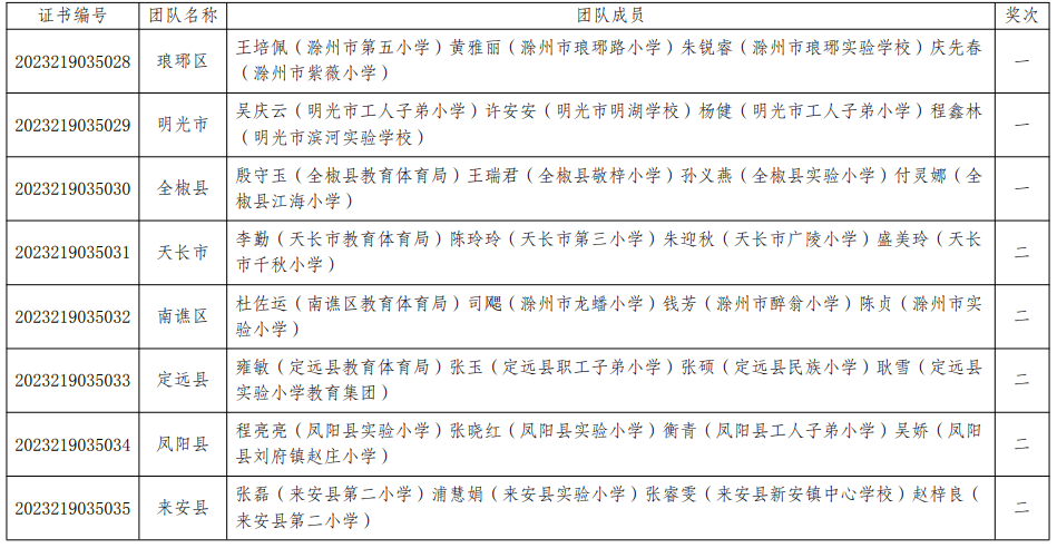 关于2023年滁州市少先队活动优质课评选活动结果的公示