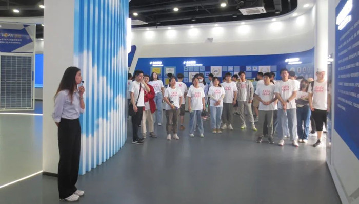 接下来,同学们走进了东方日升(安徽)新能源股份有限公司,参观了公司的企业文化展示厅、产品陈列区、产品生产中心等,实地了解了公司的发展历史、业务范围、部门组成,切实感受到高科技光伏制造企业的魅力,高新技术领域更为广阔的发展前景。
