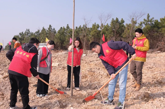 活动当日,在全椒石沛孤山林场,春暖花开,晴空万里,苍松青翠,梅花盛开,正是万物复苏、大地欣欣向荣之时,130多名团员青年身披红色志愿服,穿梭在已整理好的林地上,成为春天靓丽的景色。他们三五一组,在林场有经验的老工人指导下,你挖坑、我扶苗,你培土、我踩实,再拢起一个小坑,经工作人员检查合格,一棵核桃树苗种植成功。在全体人员共同努力下,一上午种下近10亩的核桃树苗。