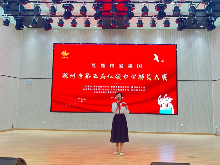 为深入学习贯彻党的二十大和二十届三中全会精神,贯彻落实习近平总书记关于少年儿童和少先队工作的重要论述,以及《中共中央关于全面加强新时代少先队工作的意见》和我省、我市实施意见,为红领巾讲解员搭建展示舞台,选拔优秀队员,传递时代青音,引领全市少年儿童坚定不移听党话、感党恩、跟党走,9月30日上午,由共青团滁州市委、滁州市教育体育局、滁州市少工委主办,共青团定远县委、定远县教育体育局、定远县少工委承办的“红领巾爱祖国”滁州市第五届红领巾讲解员大赛在定远县实验小学教育集团东兴路小学举行。各县(市、区)及市直学校共12支代表队参与比赛。