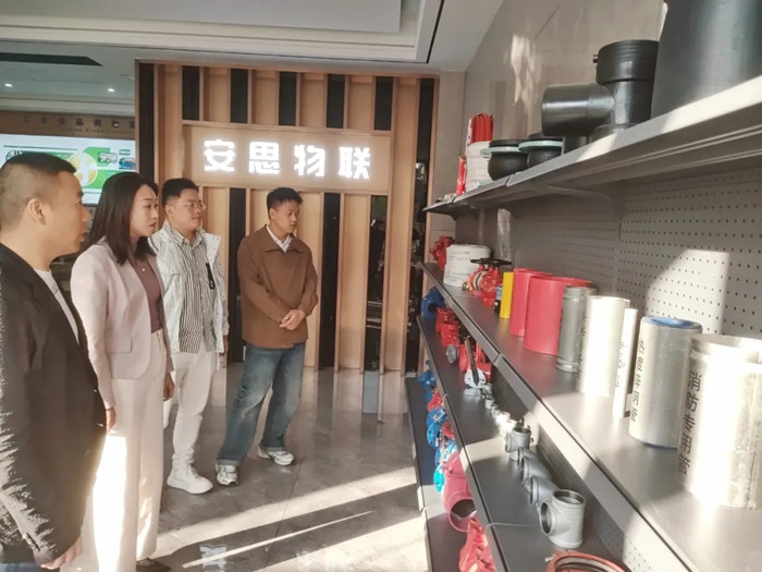 在安徽胤珑消防科技有限公司,戴莺一行实地考察了公司的生产车间和产品展厅,与企业负责人进行洽谈交流,发出合作邀请。安徽胤珑消防科技有限公司是一家专注于消防技术服务、安全、消防用金属制品制造和安防设备制造的专门性科技公司。